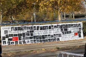 球迷在皇馬訓(xùn)練場外懸掛橫幅,表達(dá)對居萊爾的支持: