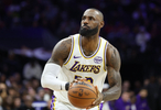 盧卡出球,勒布朗踩三分線長投。
