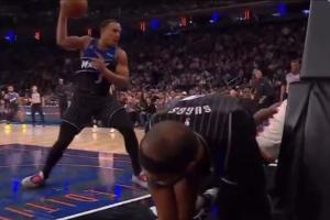 體育資訊12月09日訊 尼克斯106-100主場(chǎng)戰(zhàn)勝魔術(shù)的比賽中,貝恩曾在一次快攻中,拿球怒砸OG,最終吃到技犯。
