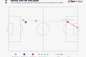 體育資訊11月5日訊 歐冠聯(lián)賽階段第四輪比賽,范德芬超級(jí)一條龍破門(mén),幫助熱刺主場(chǎng)4-0擊敗哥本哈根。
