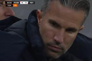 場(chǎng)邊費(fèi)耶諾德主帥范佩西看到自己球隊(duì)被絕殺,死死盯著場(chǎng)邊的平板電腦,一動(dòng)不動(dòng)陷入深思。