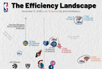 橫軸代表進攻效率,越靠右越好,縱軸代表防守效率,越靠上越強。第一象限的球隊多為發(fā)揮出色的球隊,而在第三象限的球隊通常為戰(zhàn)績比較糟糕的球隊。
