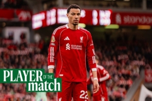 據(jù)賽后利物浦官方消息,本場(chǎng)比賽打進(jìn)兩球的前鋒?;倏水?dāng)選此役隊(duì)內(nèi)最佳球員。