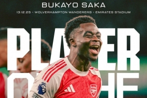 此役薩卡為阿森納踢滿全場(chǎng),兩次造對(duì)手烏龍,幫助球隊(duì)取勝,阿森納官方宣布,經(jīng)過(guò)球迷的投票,薩卡當(dāng)選本場(chǎng)比賽隊(duì)內(nèi)最佳球員。