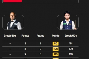 江俊發(fā)揮出色,連轟單桿54、105、110、87分,直落四局4-0零封巴里·霍金斯,晉級蘇格蘭公開賽32強(qiáng)。