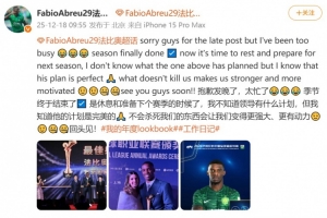 體育資訊12月18日訊 在個(gè)人社媒,國(guó)安前鋒法比奧總結(jié)2025賽季。