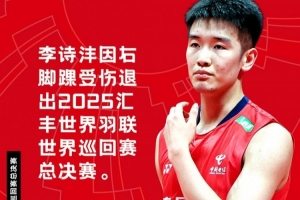 “李詩灃因右腳踝受傷退出2025匯豐世界羽聯世界巡回賽總決賽。隨著他的退賽,其所在小組的相關比賽結果將被視為無效。 ???祝愿李詩灃早日康復??????? ???”