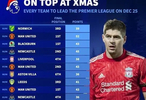 德轉(zhuǎn)盤點(diǎn)了各英超賽季半程冠軍(截止到12月25日)積分以及賽季末名次。