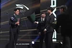在韓網(wǎng)的一段視頻中,在Gumayusi當(dāng)選年度最佳AD之前,Keria和Oner就已經(jīng)在討論要上去送花的事情了,隨后Faker點(diǎn)頭才把身邊的花拿過來準(zhǔn)備上去送給Gumayusi。