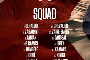 前鋒: 9-貢薩洛·拉莫斯、10-登貝萊、14-杜埃、47-恩賈恩圖