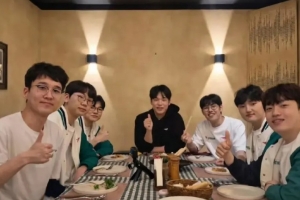 體育資訊12月21日訊 紛紛比贊??韓國(guó)解說分享與T1隊(duì)員、主播越南聚餐照片。