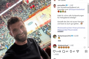 穆勒社媒曬出觀賽照片,配文:“圣誕節(jié)前夕與朋友們一起觀看拜仁男籃的比賽??????????各位都為圣誕夜做好準備了嗎?好好享受與家人共度的美好時光,祝大家一切安好?!?/p>