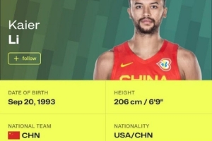 中國男籃首位歸化球員!NBA官網(wǎng)顯示:李凱爾的國籍為美國籍