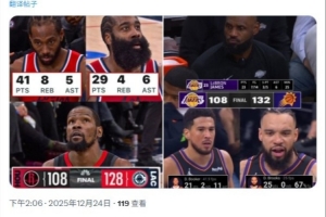 體育資訊12月24日訊 NBA常規(guī)賽,火箭108-128慘敗快船,太陽(yáng)132-108大勝湖人。