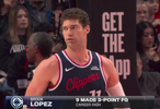 本場比賽,快船隊中鋒布魯克-洛佩茲首發(fā)出場。他在前三節(jié)比賽中出場27分40秒,15投9中砍下了31分3籃板1助攻2蓋帽,值得一提的是,他的運動戰(zhàn)進球全部來自三分球,三分13投9中,罰球4中4。