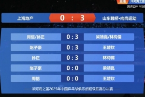 體育資訊12月27日訊 乒超總決賽男團(tuán)半決賽 ,上海地產(chǎn)集團(tuán)0-3山東魏橋,山東魏橋晉級男團(tuán)決賽。