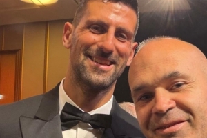 伊涅斯塔出席環(huán)足獎頒獎典禮,并獲得生涯貢獻(xiàn)獎,他在社交媒體上曬出與德約科維奇、維蒂尼亞的合照。