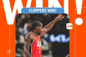 賽后快船官方發(fā)布贏球海報(bào),萊昂納德當(dāng)選封面人物。