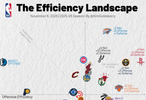 賽季至今各隊(duì)攻防表現(xiàn)(橫軸進(jìn)攻,縱軸防守)
