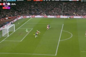 在上半場(chǎng)補(bǔ)時(shí)階段,維拉中場(chǎng)直塞發(fā)動(dòng)反擊,桑喬前插后橫傳,就在沃特金斯即將踢空門時(shí),薩利巴倒地伸腿將球鏟出底線。