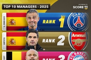 體育資訊12月31日訊 2025年世界足壇年終盤點(diǎn),Score90評選出2025年年度最佳主帥,其中恩里克實(shí)至名歸排名榜首,阿森納主帥阿爾特塔排名第2。