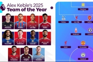 體育資訊1月1日訊 足球作家Alex Keble評2025年英超最佳陣,中衛(wèi)范戴克+薩利巴,B費、哈蘭德、薩拉赫、凱塞多在列。