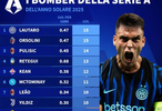 1. 勞塔羅(國際米蘭) 15球(場均0.47球)