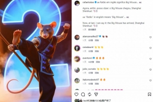 今日拉斐爾在社媒曬出一張老鼠為主題的海報(bào)紀(jì)念自己加盟申花,他寫道:“我的姓拉唐,其意為‘大老鼠’?,F(xiàn)在我終于能夠說出這句話:‘大老鼠抵達(dá)上海申花!’”