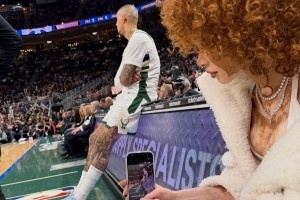 庫(kù)茲馬女友、知名模特Winnie Harlow也出現(xiàn)在場(chǎng)邊觀戰(zhàn),還時(shí)不時(shí)拿出手機(jī)給場(chǎng)上的庫(kù)茲馬拍照。她在賽后更新社媒,曬出了觀賽的照片,并寫(xiě)道:“在戀愛(ài)里上頭了?!?/p>