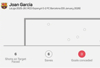 #西班牙人0比2巴薩# 據(jù)統(tǒng)計,喬安-加西亞成為自2023年11月對陣皇家社會的特爾施特根以來,首位在西甲單場完成6次撲救且未失球的巴塞羅那門將(同樣是6次)。