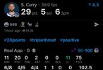 庫里第三節(jié)單節(jié)20分2助攻,正負(fù)值+11,上半場寵黑子,下半場寵粉絲。
