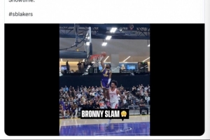 在本場比賽中,布朗尼上演搶斷一條龍快攻單臂劈扣。