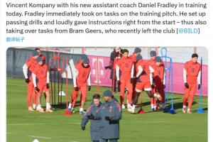 體育資訊1月4日訊 據(jù)《圖片報》報道,拜仁新任助理教練丹尼爾·弗拉德利今日協(xié)助孔帕尼,參與球隊訓(xùn)練。