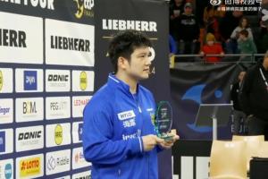 賽后,樊振東獲得了德國(guó)杯決賽MVP,并領(lǐng)取獎(jiǎng)杯。