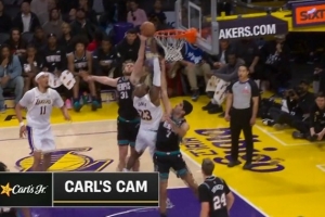GIF-詹姆斯假手遞手上籃得分并造成犯規(guī)