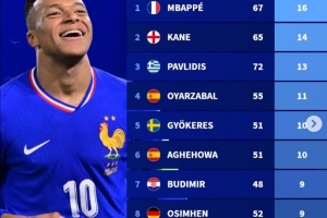 1.姆巴佩(皇馬) 67場 16個(gè)點(diǎn)球