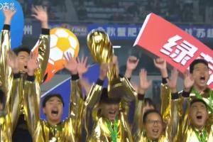 賽后頒獎環(huán)節(jié),泰州隊全隊身著金色戰(zhàn)袍,捧起首屆蘇超冠軍獎杯!