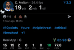 三節(jié)領(lǐng)先16分,梅爾頓個(gè)人已經(jīng)拿到19分啦,太好用了。